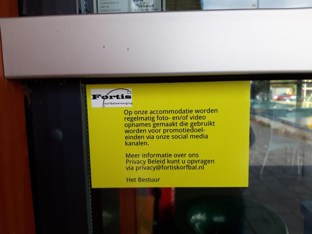 Middels de stickers worden alle bezoekers van onze accommodatie gewezen op het feit dat eventueel foto’s genomen kunnen worden en/of filmopnamen worden gemaakt. Door aanwezigen tijdig te waarschuwen kan/moet iedereen dus voor zichzelf beslissen of hij/zij wel of niet op onze accommodatie wil zijn/blijven waarbij het zo kan zijn dat foto’s worden genomen en/of wordt gefilmd (die op zichzelf misschien weer gebruikt worden op social media), met het risico dat iemand dus op zo’n foto/film herkenbaar in beeld kan zijn.
