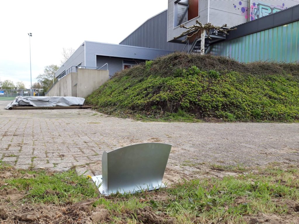 De plek die is gekozen is links van de twee garages op ons terrein (achterzijde van onze accommodatie). Inmiddels is een zogenaamde DropPit geplaatst. Deze DropPit is een asbak voor as, peuken en ander rookafval en kan worden geleegd wanneer nodig.