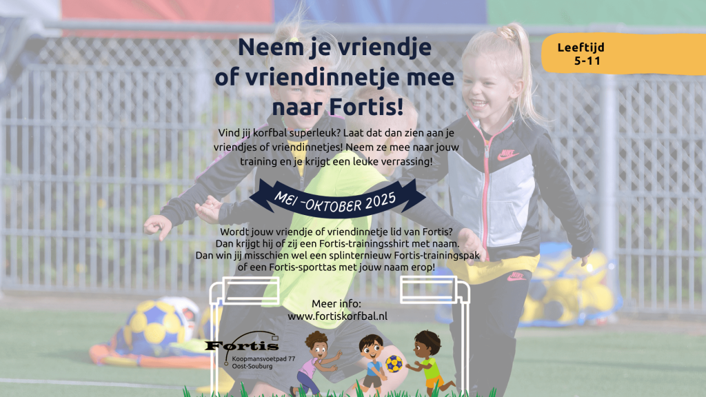 🎉 Neem je vriendje of vriendinnetje mee naar Fortis! 🧡🏐 Ben jij tussen de 5 en 11 jaar en vind je korfbal bij Fortis het allerleukste…