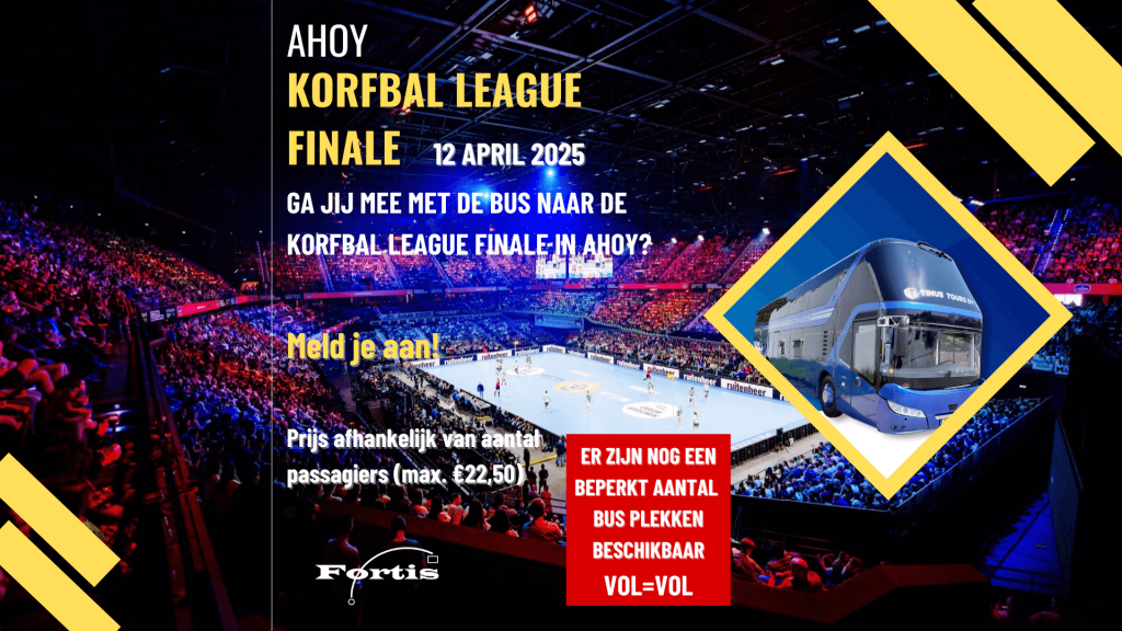 Vanwege de grote belangstelling voor Ahoy korfbal league finale gaan we met een dubbeldekker bus. Er zijn nog een beperkt…